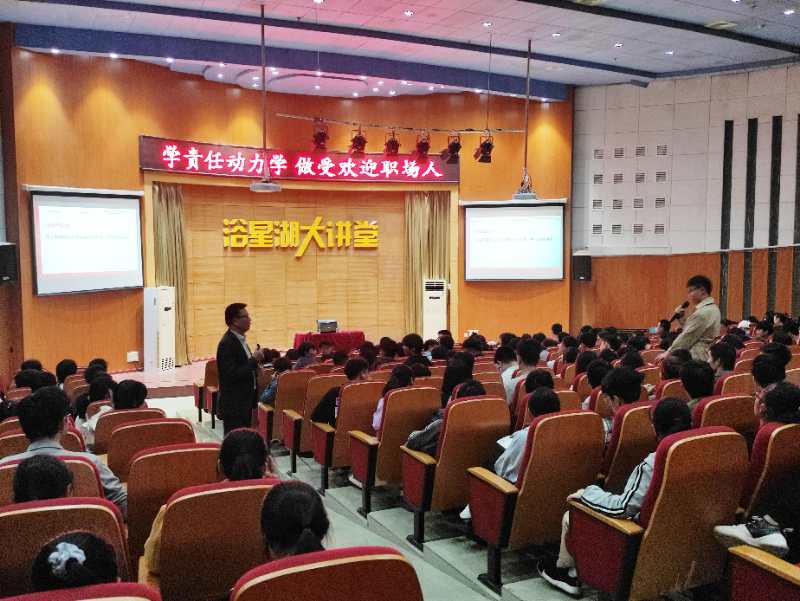 10月30日晚,学校浴星湖大讲堂灯火辉煌,数百名大学生井然有序地进入大讲堂,罗老师为他们讲授的是《学责任动力学,做受欢迎的职场人》,主要授课内容为9个特质8个雷区,以亲身经历的职场案例来讲解:敬畏角色责任R1(0),做好义务责任R3(+1),以4R责任动力输出,做职场受欢迎的人。