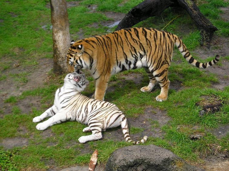幼虎不知道倒影是怎么回事,也不知道老虎在讲什么,也没有看出来它和这只老虎的相象之处,它发出一声声哀鸣,不住地颤抖。在与羊群为伍的生长环境中,渐渐以为自己也是羊老虎由于幼虎没有理解它的意思而大失所望,于是把这只幼虎拖拉到刚才的死羊旁边,狠狠撕下一块羊肉使劲塞进这个小家伙儿的嘴里,一开始,幼虎感觉塞进来的东西很恶心,并竭力把肉块吐出来。