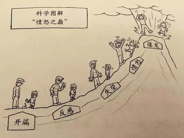 在上面的这场愤怒过程中,孩子出现了麻烦,拉响了自己的“警报系统”,爸爸用自己认为的最佳方式来安慰孩子,然而不但没成功,还让局面更混乱,家长看孩子不顺眼,孩子看家长也不顺眼,然后他们就冲到了“愤怒之巅”。