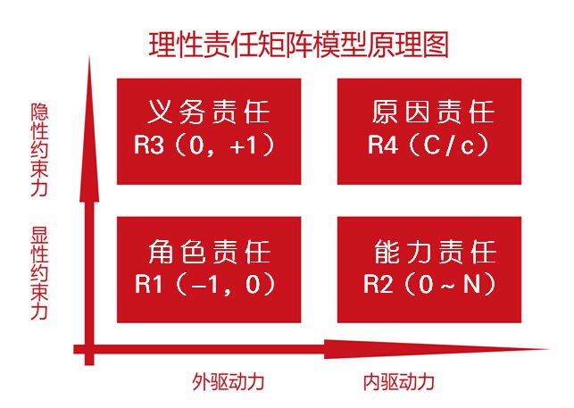 原因责任是指人在社会中承担了选择为他(大我)还是选择为己(小我)的责任,它主要取决于个人价值观、信念、信仰以及愿景目标等因素。员工追求个人成长、实现自我价值、贡献社会等。