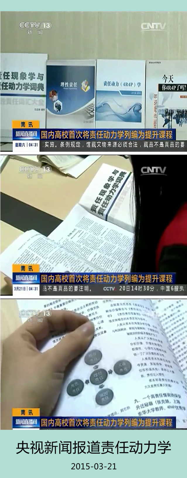 2015年03月21日,央视新闻频道重点报道责任动力(4R4P)学,已作为一门必修课在江西应用科学院列编高校提升课程,为大学生的理性责任理念和有效的责任心管理做铺垫。