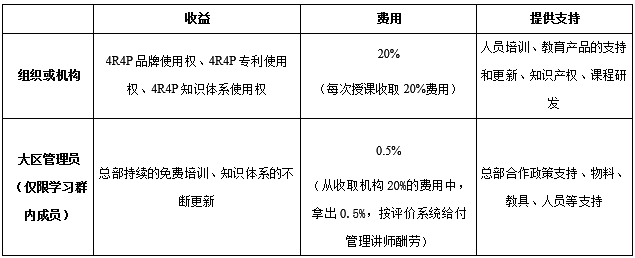 个人或组织(仅限学院内部学员)寻找一家优秀教育机构与我们达成合作,通过被服务机构的星级评定,可享受每次教育机构知识产权使用费(授课费的20%)0.5%的利润分成,服务期间,永久享有!双方评价,公开公平!