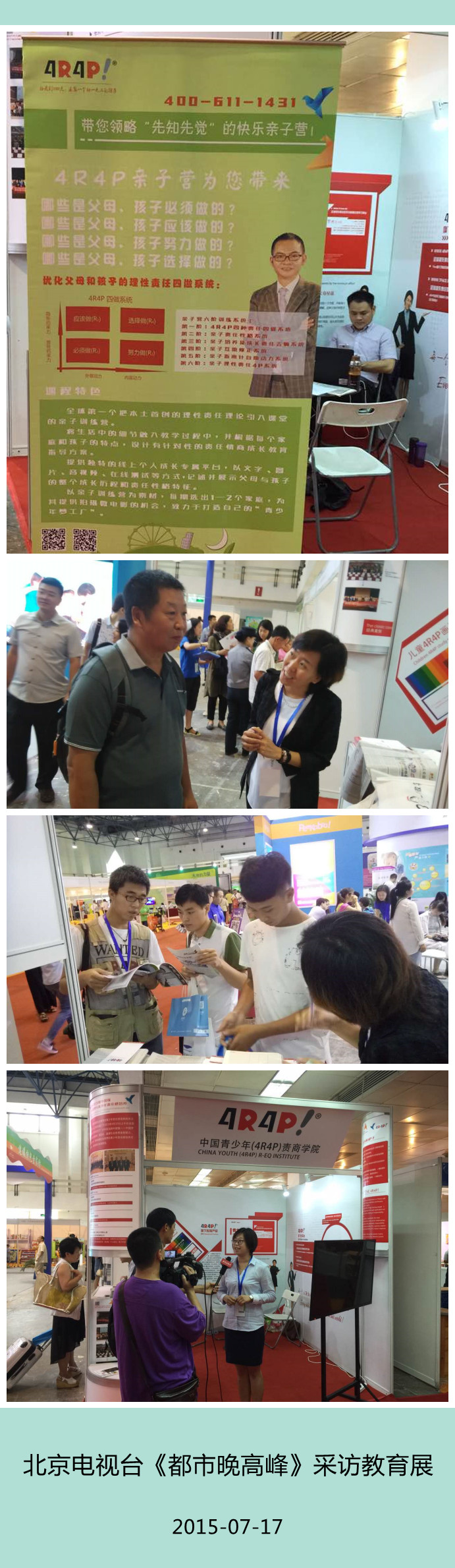 2015年7月17日,中国青少年(4R4P)责商学院参加北京国际幼儿教育展。学院高级责商导师牛飞峰老师在论坛上介绍数字化责商教育,同时北京电视台、CCTV——《品质》针对此次活动进行了采访,于2015年7月25日《都市晚高峰》播报。
