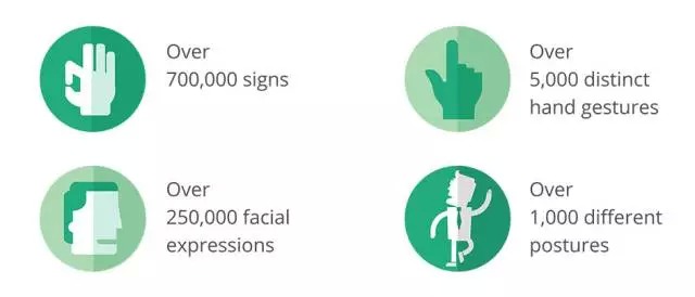 事实上:人的身体可以发出超过70万种信号、5千种手势、25万种面部表情,还有1千种不同的姿态。