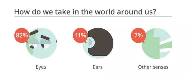 我们对世界的认识,82%是通过眼睛,11%通过耳朵,7%通过其他的感官。