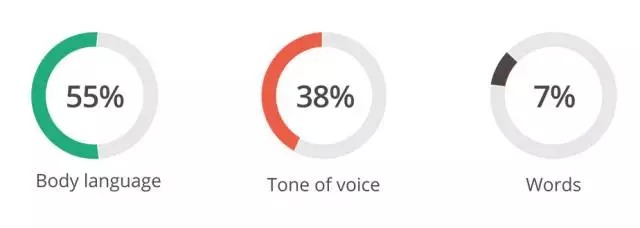 在人与人的沟通当中,仅使用文字准确性为7%,使用声音的准确性为38%,但若使用了肢体语言,可将准确性提升至55%!