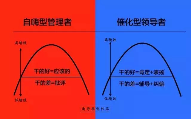 所以自嗨型的管理者管理方式比较单一,而催化型的领导者则对人以及管理风格的匹配保持较高的灵活性。