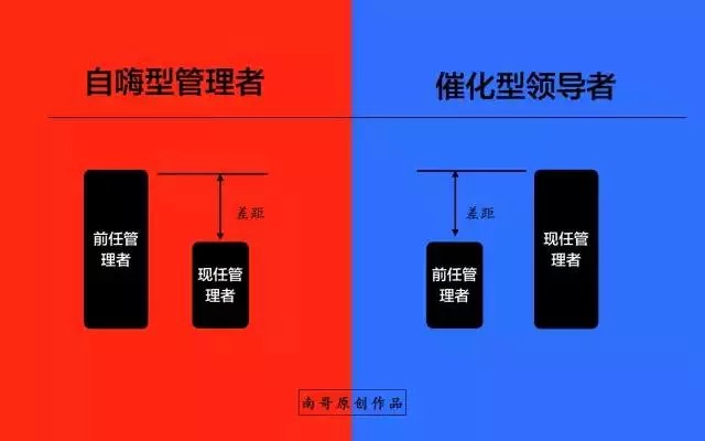 最有意思的挑战是管理者成熟度的对比,这好比是男女朋友的前任,催化型管理者往往表现得比员工的前任管理者要好,所以员工的稳定性与综合绩效会高,而自嗨型管理者一旦遇到了前任是催化型的领导者基本上是被员工严重的鄙视的。