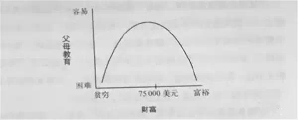 也就是,越有钱的人,对家庭教育的改善越大。但是,到了一个零界点,这种财富对教育所产生的优势就不再凸显了。