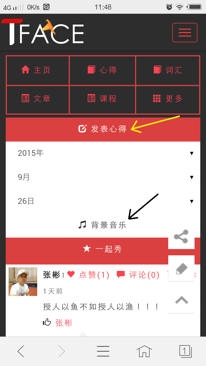 首先,点击黄色箭头所指向的“发表心得”,会显示如下: