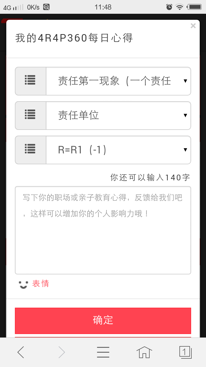 大家在文本框中就可以写自己的心得以及祝福语,填写好所述的责任现象以及公式,点击确定。