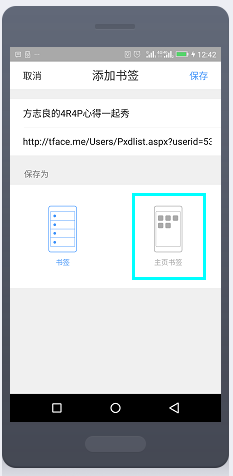 同样在QQ浏览器打开Tface你想要一键进入的界面,点击菜单,选择“添加书签”,之后你看到只有两个选项,对!是哪个“主页书签”。 如图: