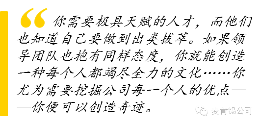 不知你意识到没有,在工作中,我们花了大量的时间及精力提升短板——即填补公司绩效与完美之间的差距。很多高管习惯于把工作重点放在“找差距补短板”上,这就导致了一种普遍思维模式:觉得公司中没有足够的人才来帮助自己推倒拦路大山。许多高管坦承自己很难认可、接受并欣赏不同观点,你也可能如此。如果能看到并发挥每个人的优势,我们的组织又会是怎样的一番景象呢?