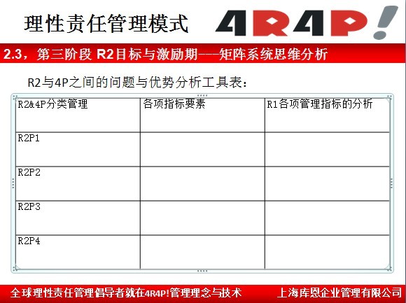 4R4P矩阵系统思维英文(4R4P Matrix System)是方志良先生4R4P理性责任管理体系(全称:四种责任四种力量管理理念与技术)的重要管理工具之一。