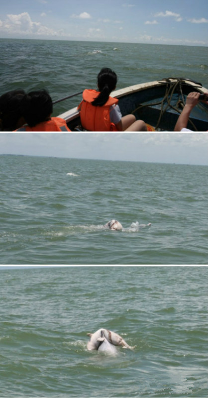 3、一只成年海豚驮着一死亡的小海豚游向深海,几次小海豚从成年海豚的背上滑落,成年海豚不顾一切安危,始终不离不弃