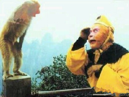7、拍86版《西游记》的时候,六小龄童上了妆,在山上遇到个小猴子,小猴儿看见比自己体型大这么多的猴王,就敬了个礼。当然猴王也回了一个。于是就有了这张超有爱的照片,这照片当时拿了摄影的国际金奖。