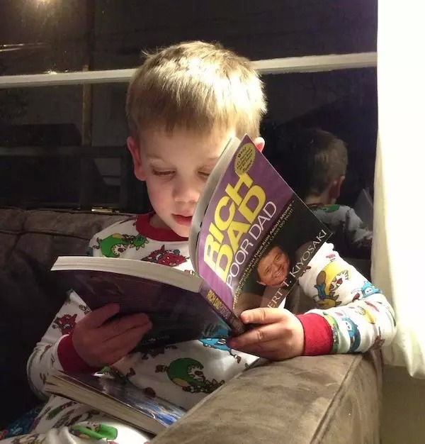 ▲Liam在看《富爸爸和穷爸爸》