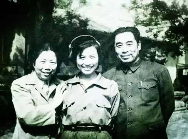 孙维世(中)与周恩来夫妇的合影(资料图)