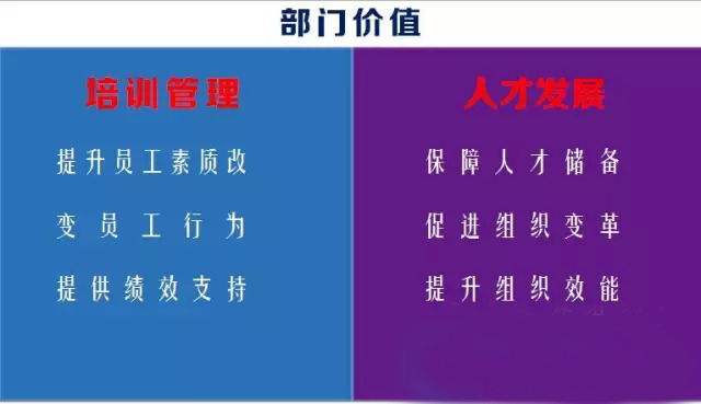 四是保障人才储备和提升组织效能,提升部门价值。传统的培训部门创造的价值主要体现在提升员工素质,改变员工行为,更专业的培训部门还能提供绩效支持;而人才发展部门的价值体现集中在保障人才储备,推动组织变革和提升组织效能。