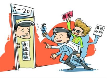 很多公司在上班期间对上门推销的业务员,都不堪其扰,对付的方法更是五花八门,最常用当是直接在门上贴着“谢绝推销”的条子,可这不贴还好,贴了条子推销员依旧上门推销所引起的争执比不贴还要大,于是乎公司白领和推销员这场没有硝烟的战争愈演愈烈。