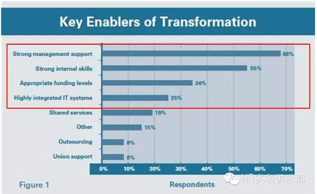 4、Highly integrated IT systems(高度集成的系统支持):比重25%,人力资源越来越依赖数据化,如果公司还停留在手工作坊,HRBP转型之路漫漫。