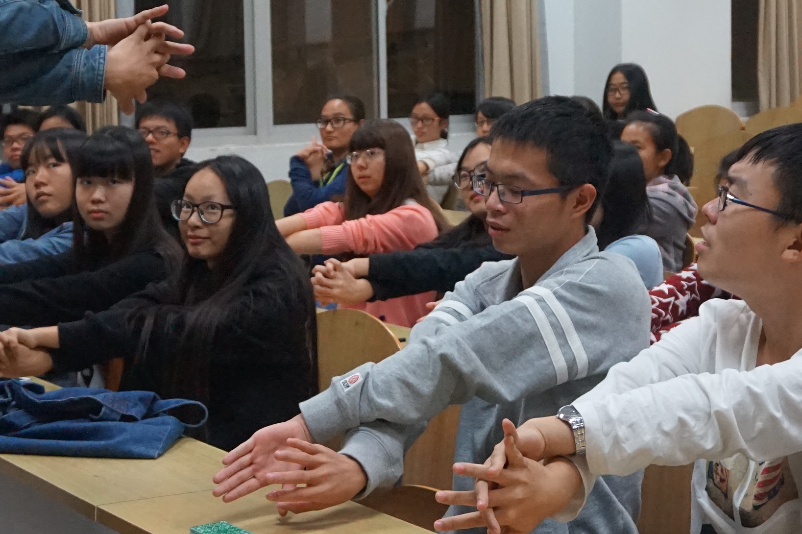 现场共有中国药科大学生科院30位同学参加,其中有大部分位是大一大二新生。李品老师首先带领大家以简单的“夹鼻子”与“机遇与挑战”导入,带动了现场的气氛,同学们的参与热情非常的高涨!
