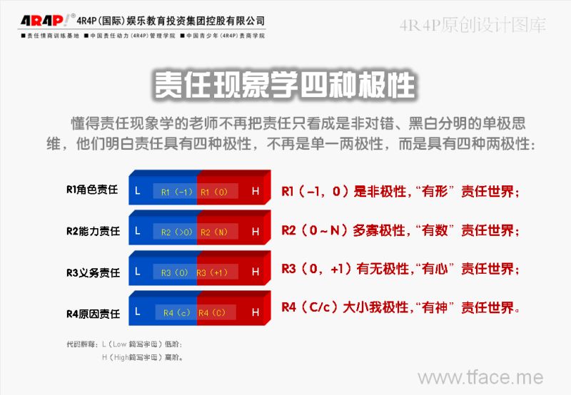 在课堂上,不要过度R4(C)与R1(-1)责阶跨度大的对比,因为这种对比的结果,最后的效果只能是传统的责任说教模式!责距越小越真实,责距越小越细微,常人喜欢的就是责距小的启发。责距越小越能体现一个人的责任逻辑思维智慧!