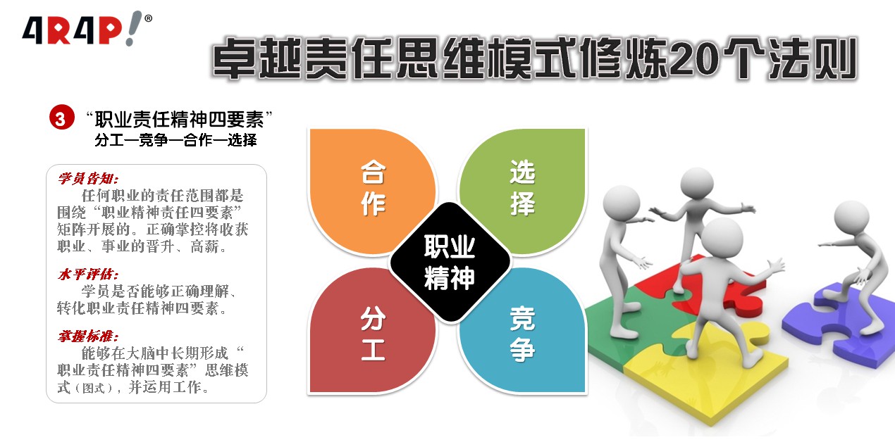 今天要提升的是卓越责任思维模式第二层次的第一阶:职业责任精神四要素。
