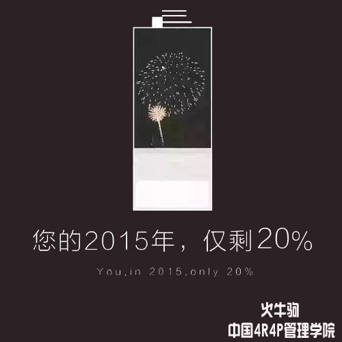 当我们的手机电量仅剩下20%时,很多人会紧张的找地方充电。当我们一年可以拼搏的时间仅剩不到20%时,也有人会在意会努力拼搏。可是当我们的“责任”仅剩不到20%时,又有多少人会紧张在意呢?2015,在最后不到20%的时间里,盘点一下我们的责任到底有多少?你的角色责任到位吗?你的能力责任发挥到极致了吗?你的义务责任做了多少?你的原因责任又为你增值多少?