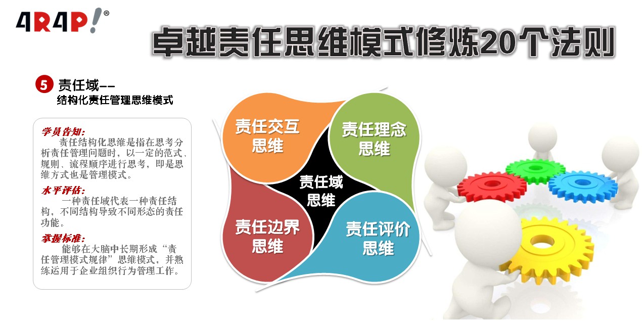 掌握标准:能够在大脑中长期形成“责任管理模式规律”思维模式(图式),并熟练运用于企业组织行为管理工作。