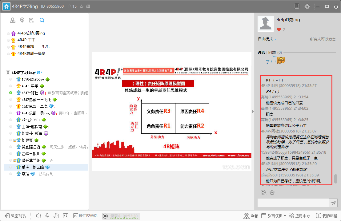 4R4P自从实行进阶群管理机制后,所有的老师们是想尽办法让更多的学员能够轻松、娱乐、快速地参与到理性责任的学习中,于是,4R4P的YY语音课堂就这样诞生啦!