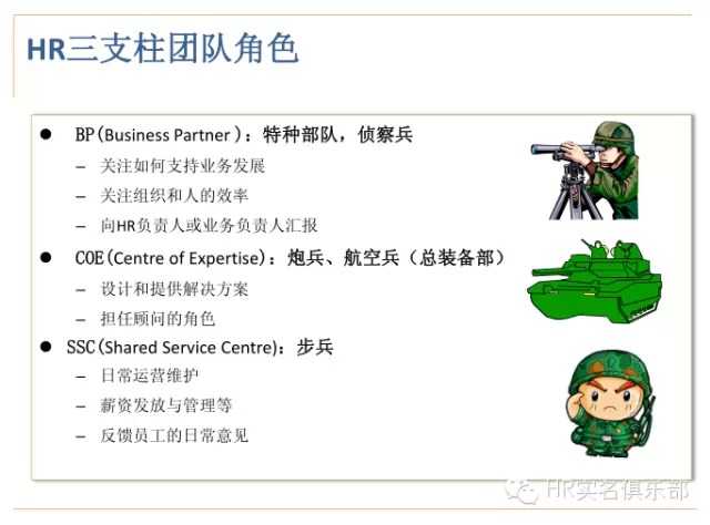 HRBP的角色并不是单一出现的, 人力资源业务伙伴、 共享服务中心以及人力资源专家三者是不能分离的。 有共享服务中心的支持,HR才能减少行政性事务的工作,以更多的精力来了解业务部门、参与组织战略, 完成HRBP的角色。 有了人力资源专家, HRBP才有后盾, 能够提供有针对性的业务战略咨询和问题解决方案。