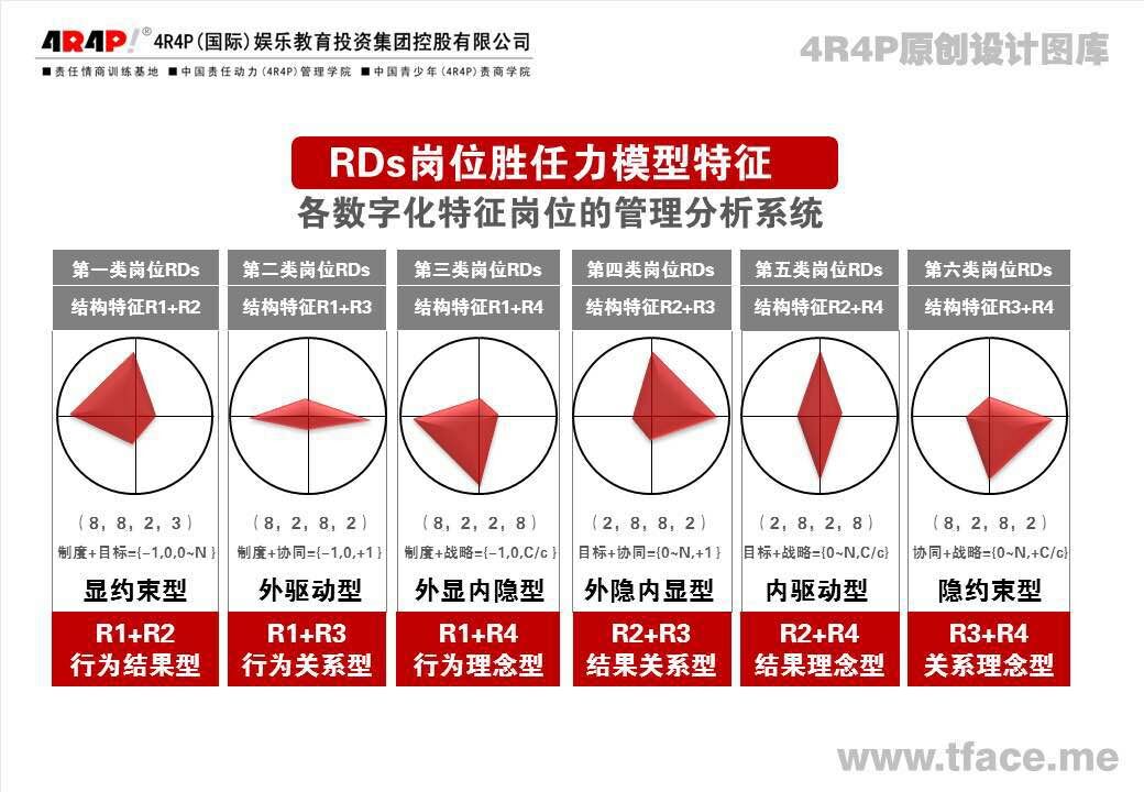 比如,看见一个东西,想到的规则条条框框,就是制度行为;看到一朵花,想到送人,就是关系行为;看到孩子,就想到他的学习成绩好不好,就是结果行为;看到4R4P,就会想到有没有用,就是理念行为。在这四种基本行为类型中又会分离出6种逻辑组合行为方式,也就是我们说的双重人格,双重责任性格。