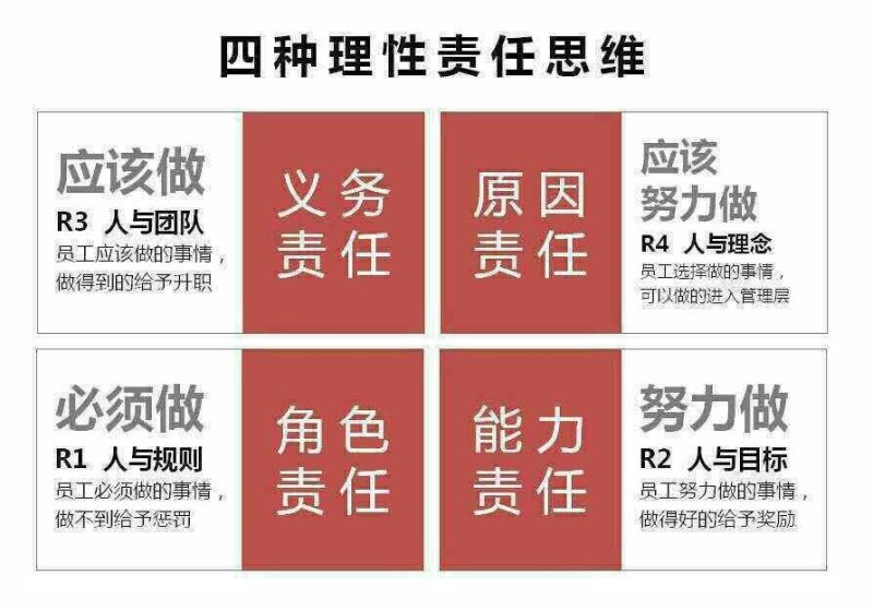 D领导属于原因责任R4型,注重工作中员工与工作理念、大局观的关系,沟通语言表达中容易出现隐性约束词汇,比如“为了…,能不能…”。原因责任R4型语言煽动性强,语言中充分考虑员工的选择与感受,但通常不会明确目标与结果要求,要员工自己琢磨,有时容易让员工感觉假大空喊口号的味道。
