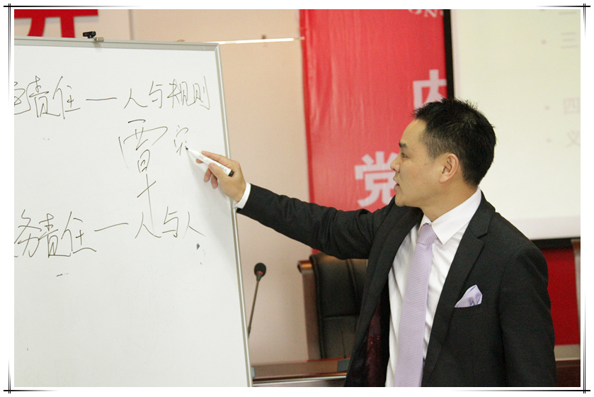 在高峰老师两个小时的精彩讲解后,方志良老师运用理性责任的数学逻辑特征{0,-1,+1,0~N}值贯穿到习近平主席提出的“三严三实”的工作要求中,同时结合内蒙古电力(集团)有限责任公司的企业价值观——规范、高效、服务、责任,从青年员工的责任价值观所涵盖的“听”、“说”、“看”、“做”这四个感官词语入手,为在场的青年员工们进行工作的落地性指导。