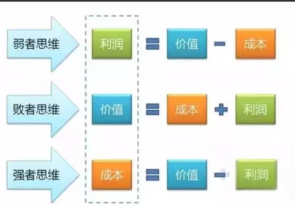 弱者的思维就是我的利润就是我创造的价值减去成本,眼里只有利润而不去关心成本的合理性。