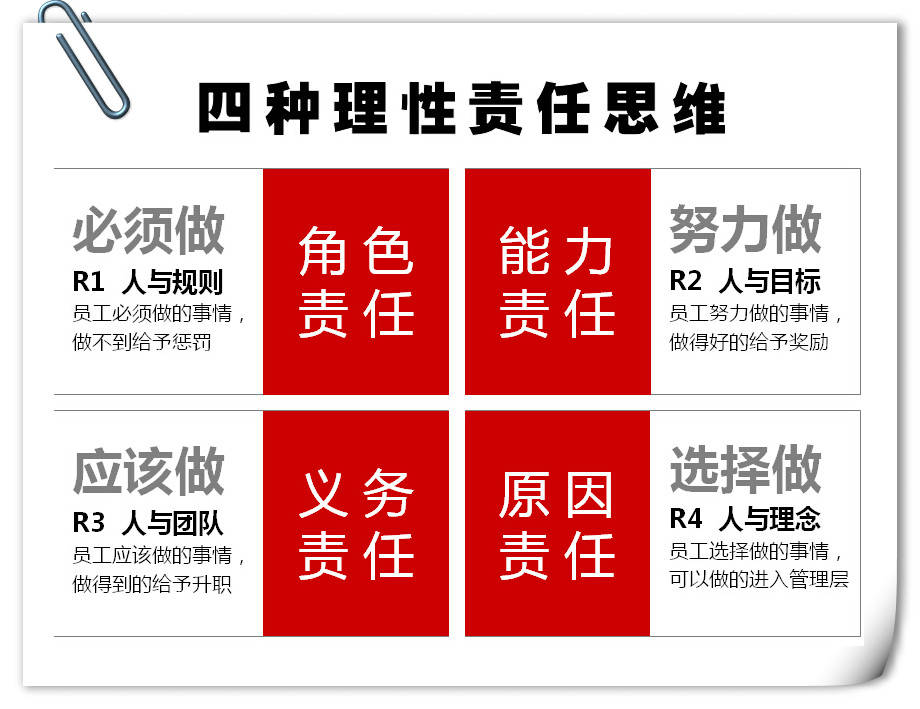 责任思维工具描述:必须做,努力做,应该做,选择做