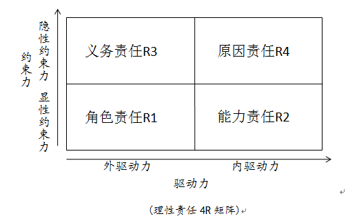 R(责任)是Responsibility 的英文缩写,R1(角色责任)是Role obligation 的英文缩写;R2(能力责任)Capacity responsibility 的英文缩写 R3(义务责任)是Voluntary liability 的英文缩写;R4(原因责任)是causal responsibility 的英文缩写。